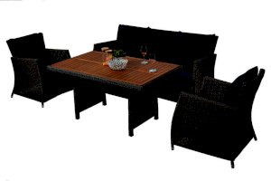 В составе комплекта: трехместный диван, стол (столешница дерево) и 2 кресла. Высококачественная лоза из полиротанга коричневого цвета стойкая к любым атмосферным явлениям. Крепкий стальной каркас с полимерным антивандальным покрытием и отличным качеством сварки. Изделие сплетено вручную нашими мастерами под жестким контролем качества на каждом этапе производства. Лоза максимально приближена по рельефу и текстуре к естественному материалу. Идеально подходит для использования на улице и внутри помещения в любую погоду. Не боится воды, солнца и минусовой температуры.