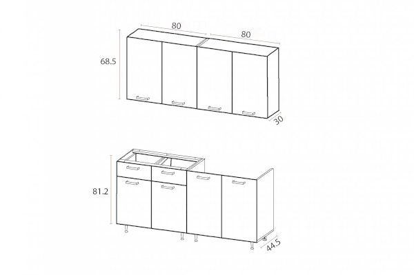 | Высота верхних шкафов, мм | 685 |