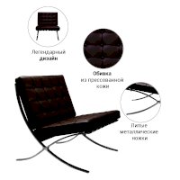 Классика современного дизайна Кресло и Оттоманка Barcelona, созданные Людвиг Мис ван дер Роэ в 1929 для Всемирной Выставки в Барселоне. Кресло в производстве почти 80 лет и по-прежнему остается иконой дизайна, «обязательной» частью в домах и офисах ценителей искусства,  архитекторов и дизайнеров. Производимое по первоначальными спецификациям, кресло Barcelona продолжает быть олицетворением стиля. Этот предмет современного искусства идеально дополнит вашу гостиную, кабинет, зону отдыха, спальню или офис.
