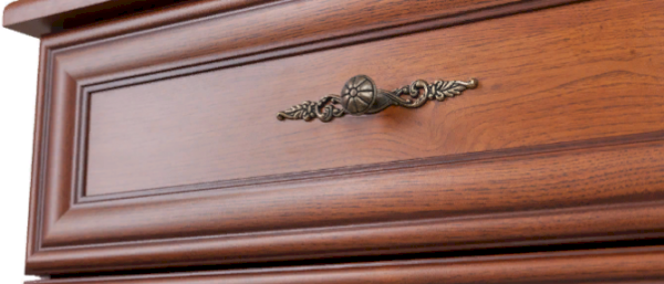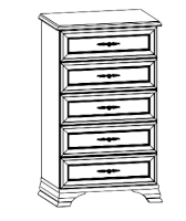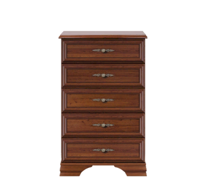 Кентаки - мебель классического стиля, отличающаяся природными цветами, отделкой фактурой, всегда актуально и востребована, она настолько универсальна, что без проблем впишется в любой современный дизайн. Стиль набора модульной мебели подчеркивается лакированной патинированной планкой в фасадах, карнизами - завершающим акцентом в зеркалах и высоких элементах набора, витиеватыми ручками. Пять узких, но вместительных выдвижных ящика.