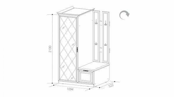 • Размер:ДхВхГ: 1094х2100х522 мм