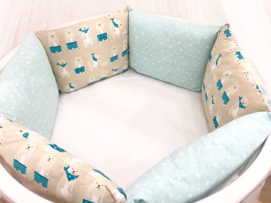 5 сдвоенных бортов-подушек без чехлов, размерами 64х30 см.