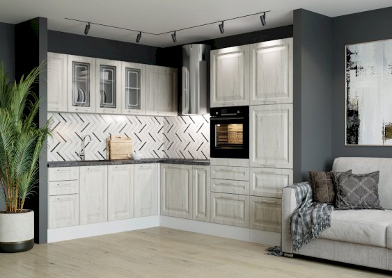 Корпус и фасад поставляются в отдельных упаковках, что дает возможность комбинировать в одной кухне разные фасады.