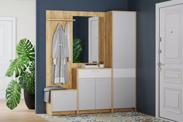 Тумба оснащена двумя полками для хранения сезонной и домашней обуви. Дополните тумбу шкафом и зеркалом из одноименной коллекции, чтобы оптимизировать место хранения в прихожей и создать особо гармоничную атмосферу!